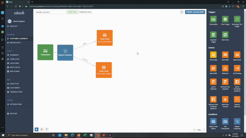 Click the Draft View button. You can edit any nodes and connections in the journey.